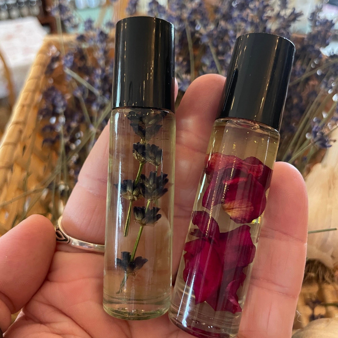 Rose Oil: organic rose petals from our own heirloom roses, damask rose essential oil in grapeseed oil